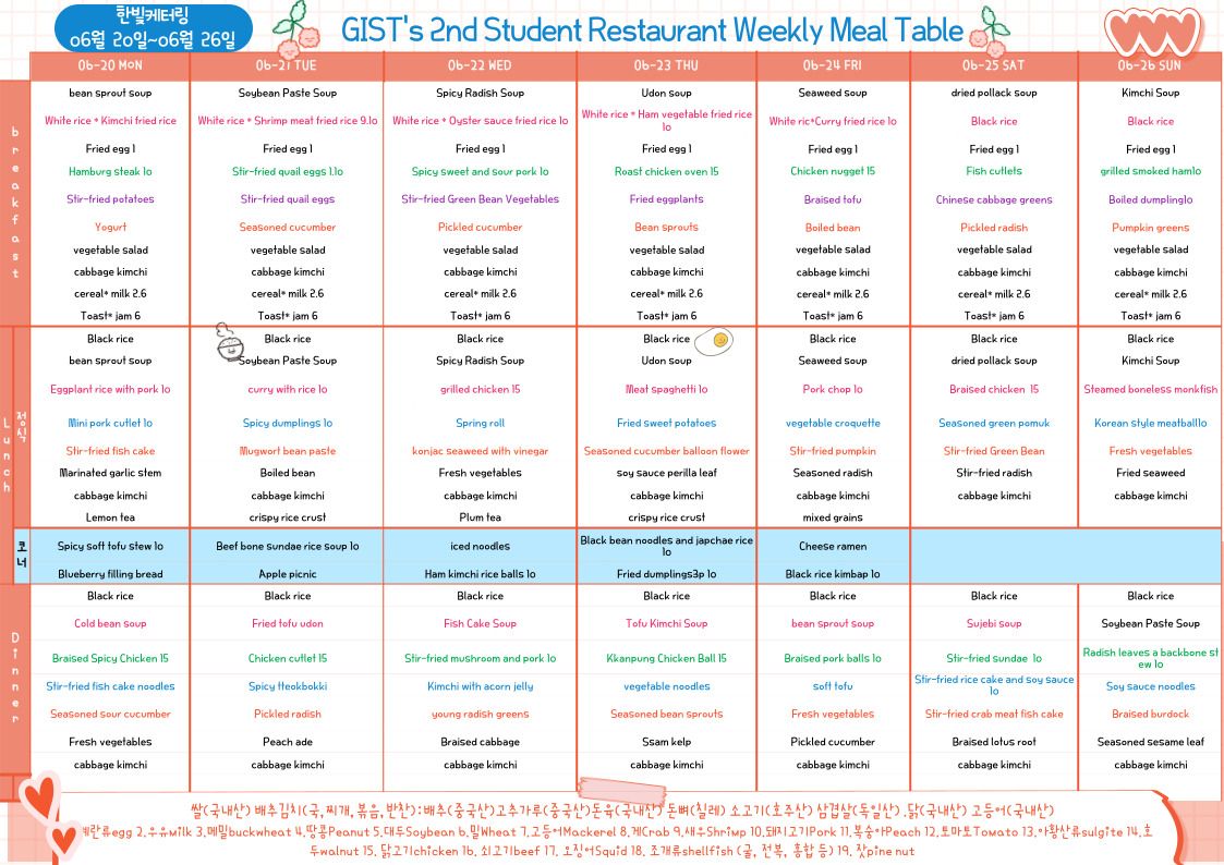 The 2nd Student Restaurant Weekly Meal Table (2022.06.20~22.06.26)