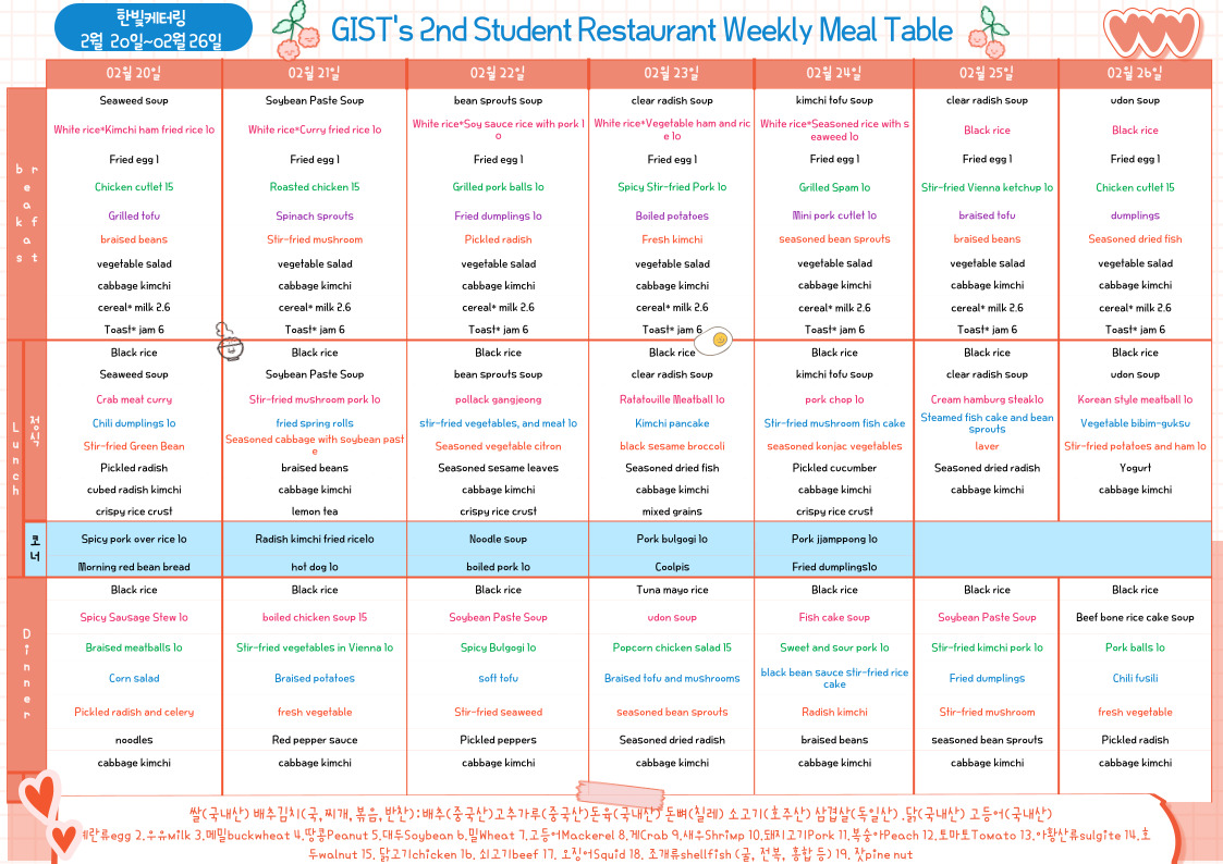 The 2nd Student Restaurant Weekly Meal Table (2023.02.20~23.02.26)