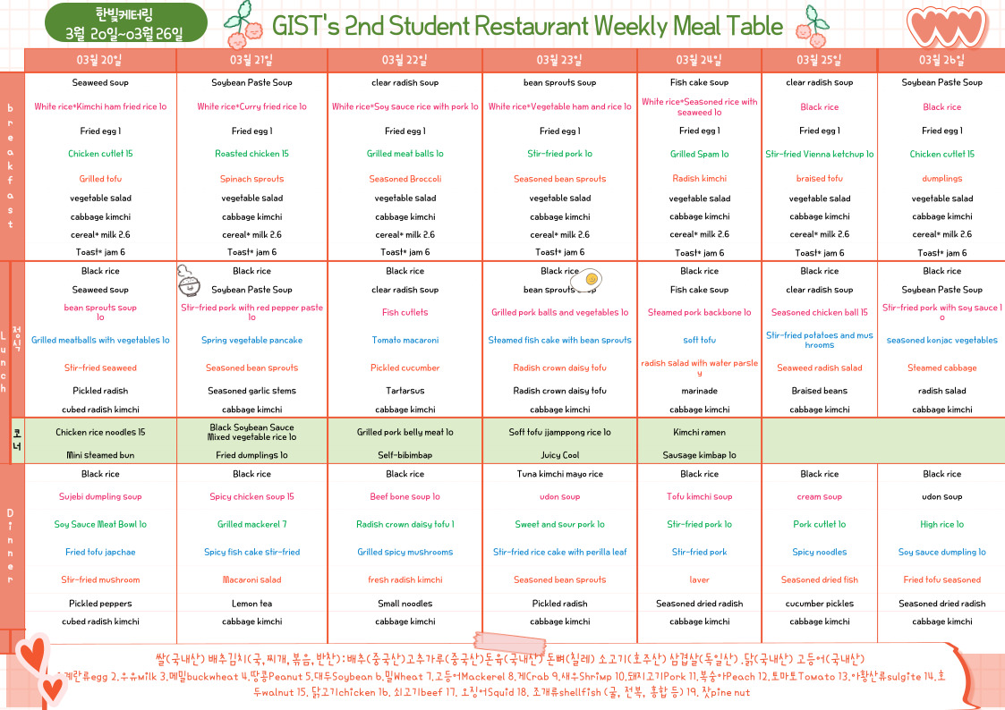 The 2nd Student Restaurant Weekly Meal Table (2023.03.20~23.03.26)