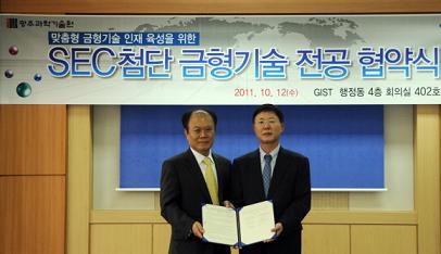 GIST, Joins Hands with Samsung Electronics to Develope a Customized Human Resources -Supported Scholarship to 15 Students for 5 Years, the Students Entered Samsung Electronics after Their Graduation -Develope Talents with Masters or Doctors Degree Who Can Respond to the Sophistication of Mould Technology GIST(Gwangju Institute of Science and Technology, President Jung-Ho, SONU) announced that on Oct. 12 it signed a "GIST-Samsung Electronics Advanced Mould Technology Contract Type Program(SEC Advanced Mould Technology Major"), which is industry-university cooperative program to nurture customized talents with Samsung Electronics. Samsung Electronics provides scholarship to the students who take that course and guarantees hiring of the students after their graduation. The "SEC Advanced Mould Technology Major", a human resources development program with conditions of hiring is aimed at developing talents with masters or doctors degree who can respond to the sophistication and combination of mould technology.