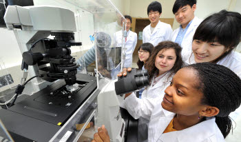 Science technology universities equipped with cutting-edge research devices are seeking to establish international campuses by attracting foreign students. International students from GIST and current GIST students are confirming molecular structures of new material with cutting-edge equipment.