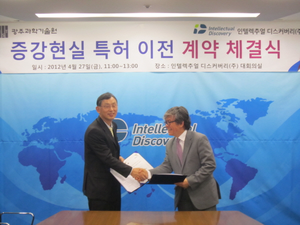 GIST Sells a Package of Smart Phone Patents The Gwangju Institute of Science and Technology (GIST, President: Jung-ho Sonu) announced that it has signed a technical transfer agreement that will sell a package of 50 patents to an intellectual property company named "Intellectual Discovery" (CEO: Gyung-man Huh). Following a cooperation agreement concluded in April, GIST and Intellectual Discovery have tried to find ways for cooperation in the field of patent incubation, and this patent purchase and sales agreement will be a foundation to establish a patent pool supporting information and communication companies in Korea. Professor Seong-ju Park, Director of GIST Technology Institute, remarked: "International actions seeking the standardization of patents have begun in the field of augmented reality. Expected effects of cooperation between Intellectual Discovery and GIST include a first mover advantage regarding international standards."
