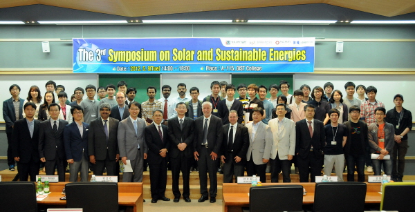 GIST Research Institute for Solar and Sustainable Energies, Held International Symposium on Renewable Energy The Research Institute for Solar and Sustainable Energies (director: Park Seong-Ju) of Gwangju Institute of Science and Technology (GIST, president: Sonu Jung-Ho) announced that it held an international symposium to ceremony the completion of the construction of the renewable energy research center building on May 8. This international conference invited six prominent scholars in the solar cell field including Alan J. Heeger who won the Nobel Prize for Chemistry in 2000 for their discovery and development of conductive polymers, and held an academic lecture.
