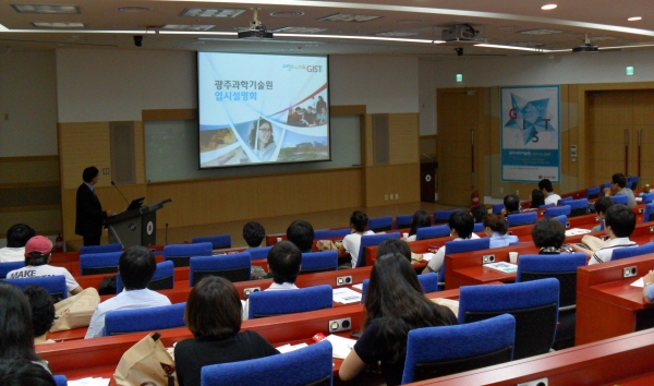 Graduate School of GIST, Holding Brief Session on Its Admission Graduate School of Gwangju Institute of Science and Technology (president, Kim Young-Joon) held a brief session on its admission requirements and an open lab. for the students who want to apply for the first application for the spring semester of GIST in 2013. Seven graduate programs of GIST, School of Materials Science and Engineering, School of Mechatronics, School of Information and Communications, School of Environmental Science and Engineering, School of Life Science, Department of Nanobio Materials and Electronics, Department of Photonics and Applied Physics, and Graduate Program of Dept. of Medical System Engineering, select 280 students for its Master"s program course and 160 for its doctoral program and its combined master"s and doctoral program in 2013. GIST yearly selects students three times, first and second applications for the spring semester, and another application for the autumn semester.