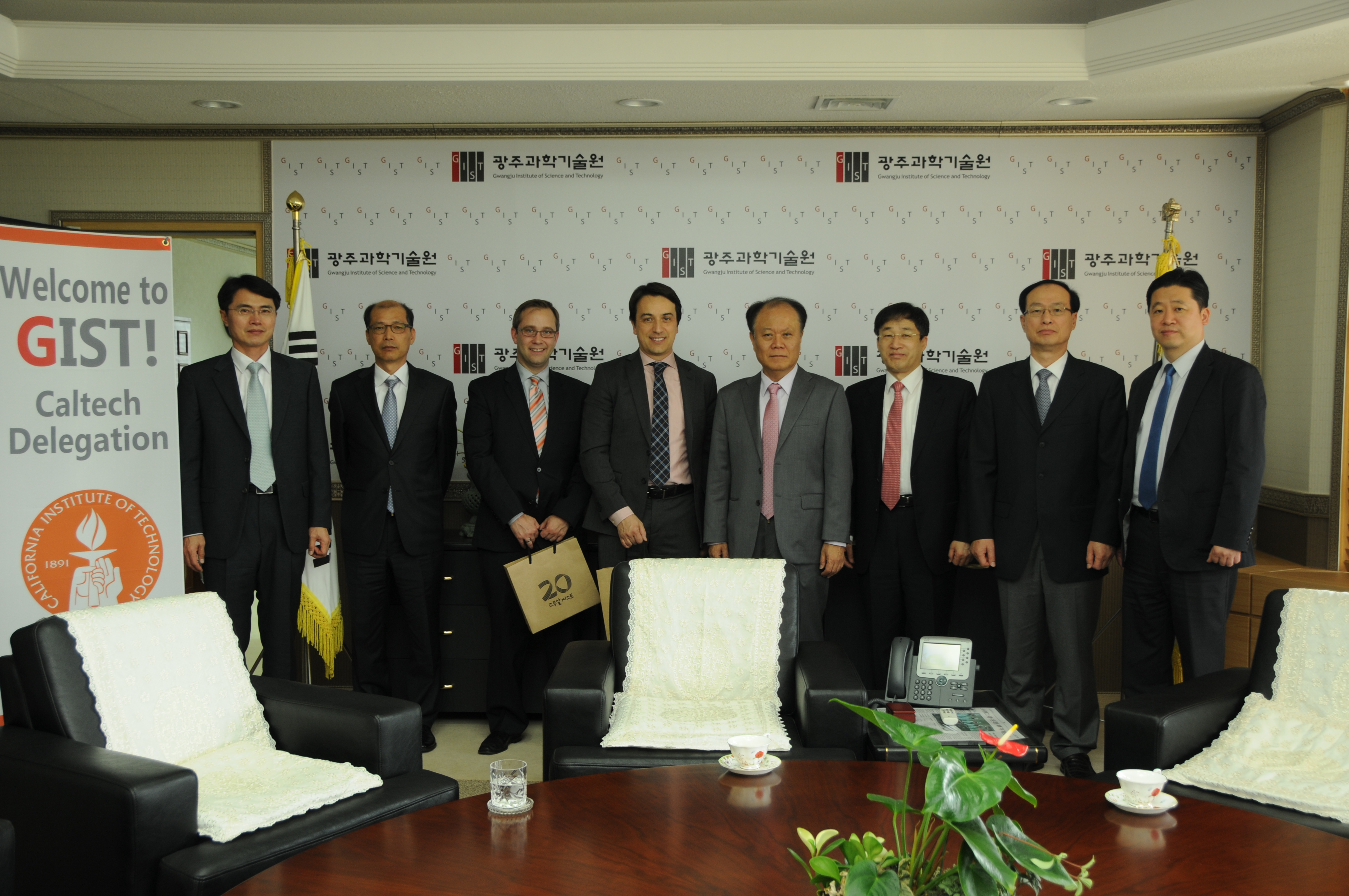 GIST Enhanced Cooperation with Caltech – From 6 to 8 May, the experts in technology transfer and establishment of new business ventures and in raising funds for development visited GIST to share the strategic visions between the two.     □ GIST (Gwangju Institute of Science and Technology, President   Young Joon Kim) and Caltech (California Institute of Technology), one of the most prestigious research university in the US, are improving the mutual cooperation in terms of various areas such as exchanging students, conducting joint researches, transferring technologies, establishing new business ventures, and raising funds.   ❍ From May 6 to 8, Caltech’s two officers – Frederic Farina, CIO (Chief Innovation Officer) at Executive Director Office of Technology Transfer, and W. Matthew Leroux, Assistant Vice President for Development, Campaigns and Principal Gift Strategy – visited GIST and shared Caltech’s accumulated experience and knowledge about each related area. On May 8, GIST stated that this visit was the beginning of the cooperation and exchange between GIST and Caltech in terms of technology transfer, establishment of new business ventures, and fund raising. ❍ Caltech has received 32 Nobel awards and is now the benchmark for research universities of the world. GIST and Caltech signed an MOU to increase the number of students and professors exchanged between the two and to strengthen mutual cooperation in last October. And GIST and Caltech are fostering cooperation in terms of education and research this year, e.g., conducting a joint research by eight professors (four professors from each) in terms of new materials, biotechnology, and medical treatment. ❍ This visit is a part of follow-up efforts for cooperation and exchange following reciprocal visits by the two Presidents last year. This visit is to expand the scope of cooperation including technology transfer and establishment of new business ventures in order to turn the results of research & development into money-making ventures and raising funds for the development of the university and, consequently, to share the two universities’ development strategies, know-hows, and experience in the mid- and long-term.  □ Frederic Farina met representatives from GTI (GIST Technology Institute), explained the foundation of Caltech and the current status of technology transfer, and discussed the method to conduct the exchange and cooperation between the two. □ W. Matthew Leroux met the representatives from Section of Public Relations and Funding at GIST and explained the current funding situation and the strategy and the need to vitalize the funding. He also promised to invite the representatives from GIST at “International Fundraising Congress” held in the US next year with fundraising experts from renowned universities including Caltech, as a sign of closer cooperation in the future.