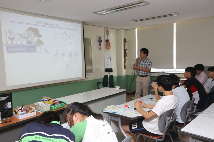 At the 4th Fun Mobile Science Classroom on July 9th, Prof. Seo, Ji Won of GIST(Gwangju Institute of Science and Technology, President Young Joon Kim) gave a lecture entitled “Find chemistry in your life.” He explained fun stories about how chemistry is deeply embedded in our daily lives, such as clothes, food and cell phone.