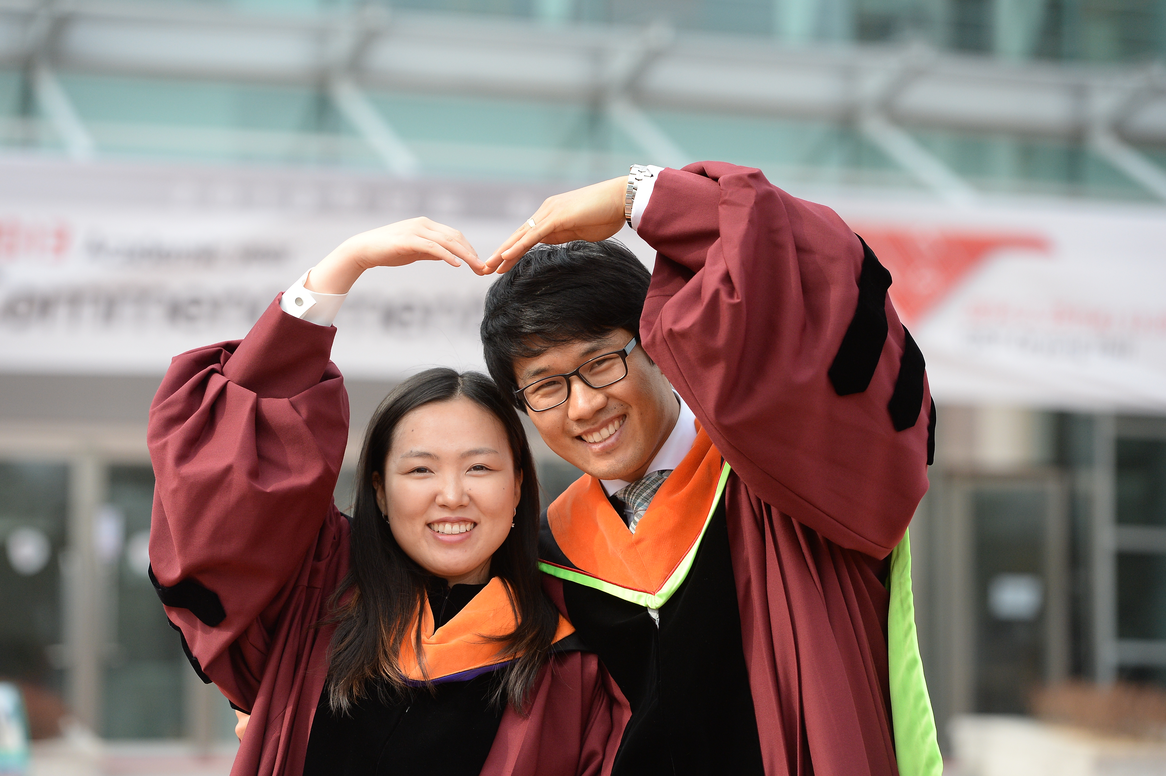 Gyeongsang-do’s ‘lovebird couple’ Becoming ‘a couple with doctorate degree’ at GIST - Yong Eun Park and Hyun Jung Kim of Environment Engineering got married on February 22, 2014 and both received doctorate degrees on February 25, 2014 □ On February 25, 2014 (Tuesday), a ‘lovebird couple’, who studied environment engineering together for ten years, both received doctorate degrees at the graduation ceremony of Gwangju Institute of Science Technology (GIST, President Young Joon Kim) after being married earlier on. □ The couple is Mr. Yong Eun Park (age 33) and Ms. Hyun Jung Kim (age 30) studying environment engineering at GIST. The two got married three days before the graduation ceremony on February 22, 2014, followed by receiving the doctorate degree of engineering at the graduation ceremony held on February 25, 2014. Mr. Park got his doctorate for his study on how pollutants change in river basins due to climate changes, while Ms. Kim got her doctorate for her study on how microorganisms pollute reverse osmosis membranes when they are used during the process of water treatment. □ The couple first met studying environment engineering at the Kyungpook National University as a returning student and a junior colleague in the same department. They got closer at the athletics competition where Mr. Park was the coach and Mrs. Kim was the athlete of female kickball game. They had lots in common, including both staying at dormitory, studying the same major and having parents doing farm work. The two quickly became a couple after going to cafeteria and library together. □ The reason why the ‘Gyeongsang-do couple’ entered GIST in Gwangju is because of Ms. Kim’s internship. She said, “During my stay at GIST for one month as an intern, I felt that the professors had clear research visions and taught their students with passion and in earnest. I decided to do my graduate course at GIST because I felt it was a place that could develop my knowledge further.” □ At Ms. Kim’s recommendation, Mr. Park also attended the Open Lab for GIST’s graduate school and he liked the scholarship system, research facilities and active research atmosphere. After graduating from university in 2007, the couple entered into the master’s course in environment engineering at GIST. Mr. Park and Ms. Kim each studied at the Environmental systems engineering lab Energy and Biotechnology Laboratory for two years and went on to continue the doctorate degree in 2009. □ Studying for the doctorate degree was not easy. There were times when they felt frustration, but at times like that, the couple encouraged each other and engaged in research. They enjoyed going on dates to famous restaurants or playing table tennis at the gymnasium to ease stress. Mr. Park said, “I was able to clarify my life goal by leading a religious life at GIST’s church, together with my studies at graduate school. As a couple of the same department, we were able to understand each other better and felt connected because we knew the difficulties faced when doing research at the lab.” □ After ten years of as a couple, the two got married on February 22, 2014 and they plan to go the US sometime during March. With the recommendation of the academic advisor, professor Joon Ha Kim (School of Environmental Science and Engineering), Mr. Park was chosen as a post-doc. researcher for a research center affiliated to the US Department of Agriculture. Ms. Kim also plans to work as a post-doc. researcher in the US. Since they haven’t had time because of preparations for the graduation ceremony and going to the US, they plan to go to a popular vacation spot in Cancun, Mexico. close to the US for their honeymoon. □ (Yong Eun Park) “Because of many benefits I received, GIST allowed me to concentrate solely on research, and also I obtained many valuable things here, including gaining confidence in English skills, learning to be passionate about research and other wisdoms needed in life. As a graduate of GIST, I will continue my studies and never forget my memories at GIST, as well as my feelings of thanks to the school.”