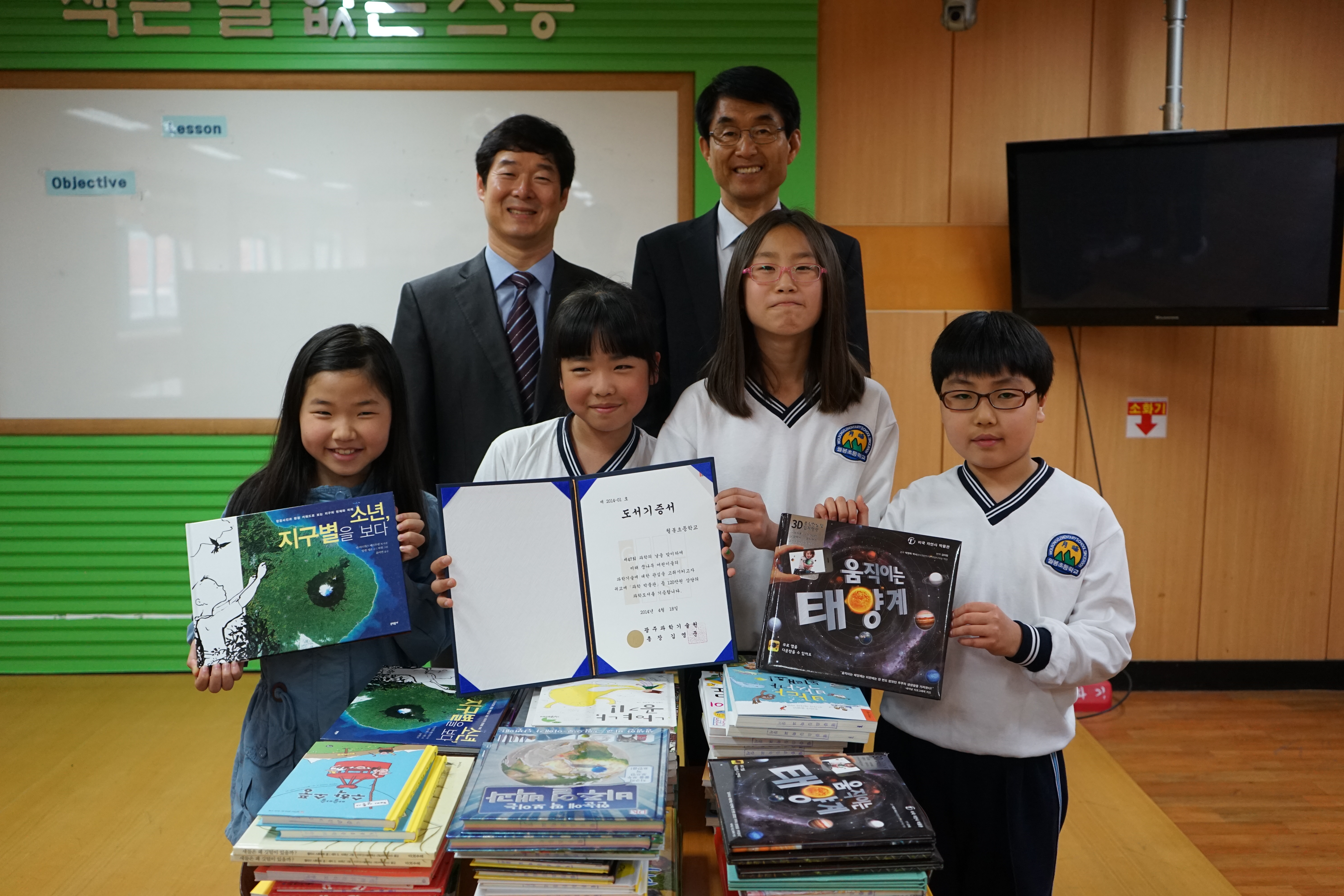 Celebrating <Science Day> GIST opens science experience event and donates books for children - APRI holds ‘Science World for Primary Students’ on April 22 (Photo) Science Books Donation Event at Wolbong Primary School in Gwangju April 18 □ In celebration of the 47th Science Day, Gwangju Institute of Science and Technology (GIST, President Young Joon Kim) held science program April 22 (Tuesday) to offer a chance for primary students in neighboring communities to have direct experience with laser, the specialized research subject of GIST. o Advanced Photonics Research Institute (APRI, Director, Yong-Tak Lee), a research institute specialized at photonic technology and laser held the event of ‘Science World for Primary Students’ in the High-tech Industrial Complex from 1:00-5:00 PM April 22, inviting primary students in the industrial complex to offer opportunities of various experiences related to laser. □ The event has been held since 2008 with researchers at APRI participating as instructors to help students better understand and experience the nature of light with various activities including drawing with laser, balloon popping game, laser alarm experience and learning the principle of high power laser. o For the event, 70 participants ( 60 students and 10 teachers) visited the site from 5 primary students in the High-tech Industrial Complex. □ GIST also donated 800 science books with the budget of KRW 12 million to 10 primary schools including Wolbong Primary School in the industrial complex in celebration of <Science Day>. Lee Byeong Ha, the Dean of the Office of International & Public Affairs visited Wolbong Primary School (Principal Kim Bong-jae) April 18 to hold book donation ceremony and deliver the books to students. (Photo) □ President Young Joon Kim said “Celebrating Science Day, I expect the scientific experience of in event will be an opportunity for the public to feel more familiar with science and primary students interested in science to dream of being future scientists.”