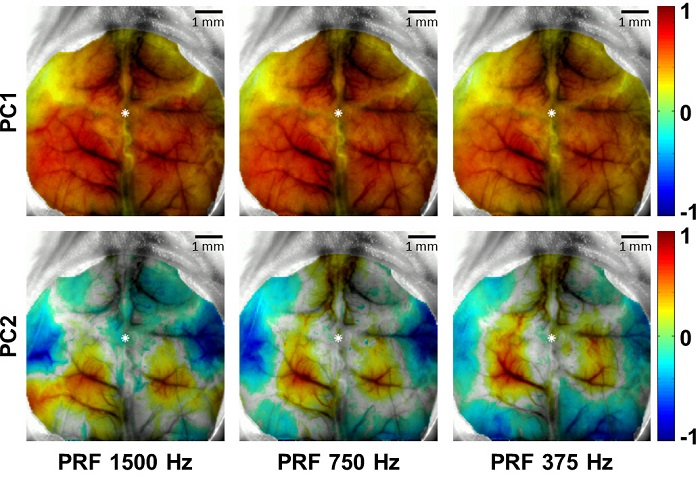 □ The research team constructed an OISI imaging system to acquire cerebral hemodynamic images and observed the presence or absence of a brain stimulation effect according to the frequency of the ultrasonic stimulation. The hemodynamic changes in the brain were different according to the pulse repetition period even at the same frequency. In addition, the observed cerebral hemodynamic changes were divided into two components by applying the PCA method. The cerebral hemodynamic signals were different according to each component, and the laser speckle images showed similar changes in blood flow velocity during ultrasonic stimulation.