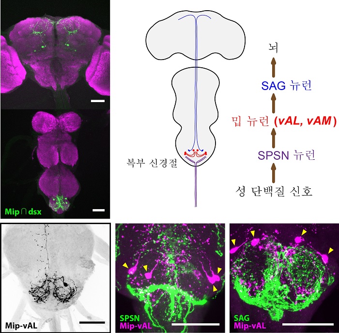 □ Professor Young-Joon Kim of the School of Life Sciences at the Gwangju Institute of Science and Technology (GIST, President Seung Hyeon Moon) has identified neurons that regulate the reproductive behavior of female Drosophila and found that reproductive behavior signals are transmitted by the myoinhibitory peptide (Mip), a type of nerve protein.