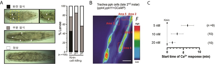 □ Professor Do-Hyoung Kim and Professor Young-Joon Kim of the School of Life Sciences at the Gwangju Institute of Science and Technology (GIST, President Seung Hyeon Moon) collaborated with Professor Michael E. Adams of UC Riverside (USA) to discover that the kinin ** hormone regulates the process of filling air in the respiratory tract during the process of molting * for insects.