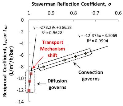 * After limiting hydraulic pressure, the salt removal ability of the membrane is markably reduced, and this is impossible to explain by fluid diffusion theory.
