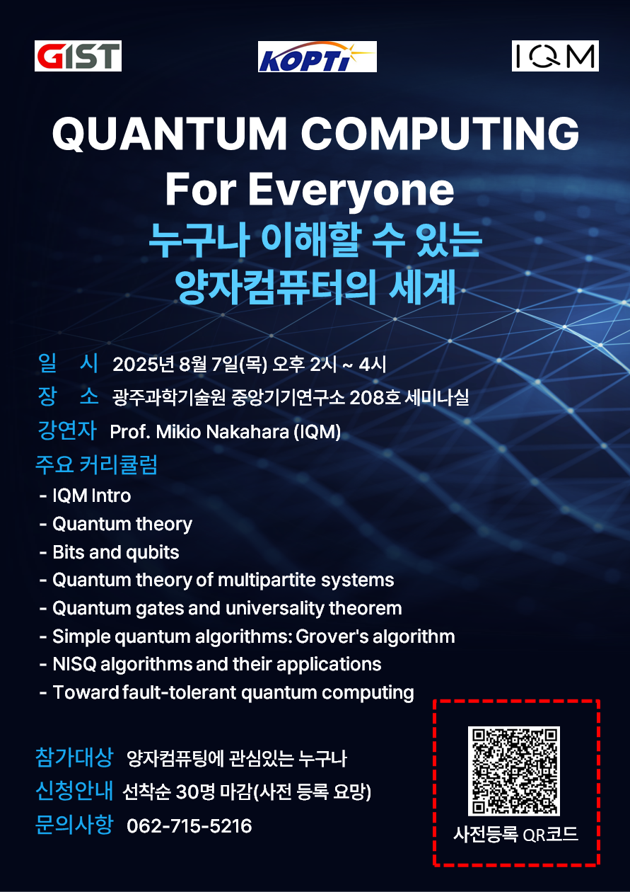 누구나 이해할 수 있는 양자컴퓨터의 세계 세미나 안내드립니다.