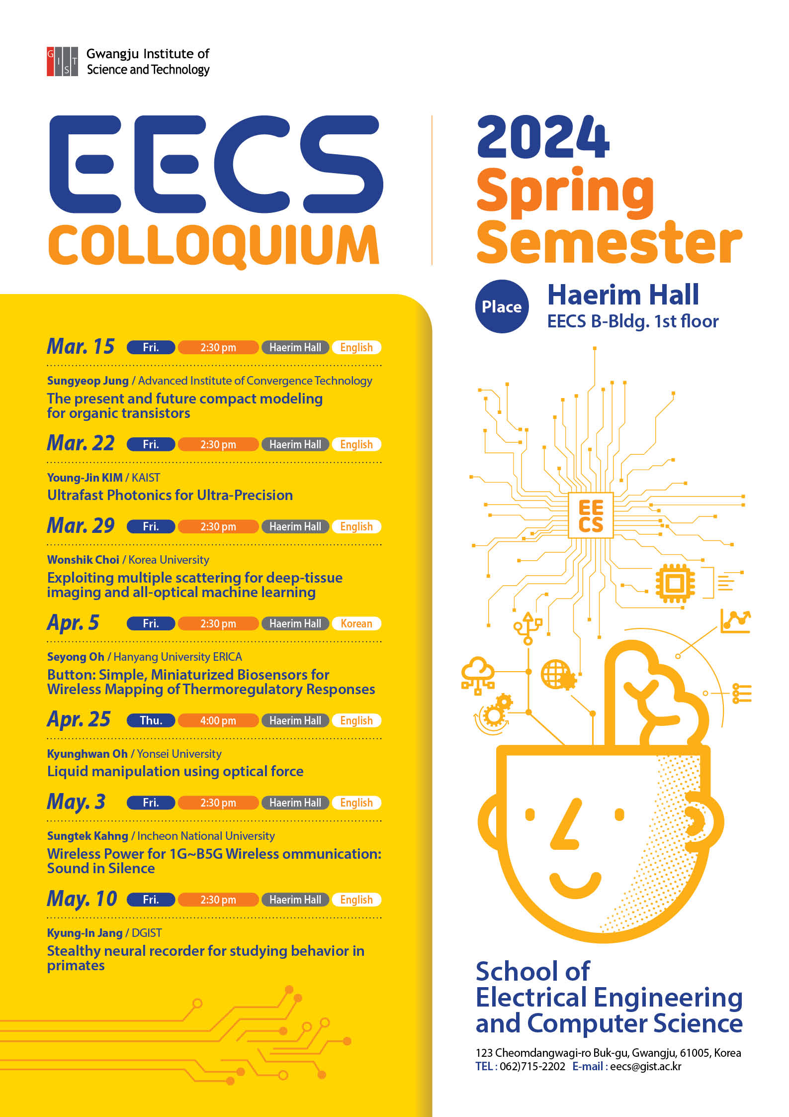 2024학년도 1학기 전기전자컴퓨터공학부 콜로퀴움을 아래와 같이 안내 드립니다.