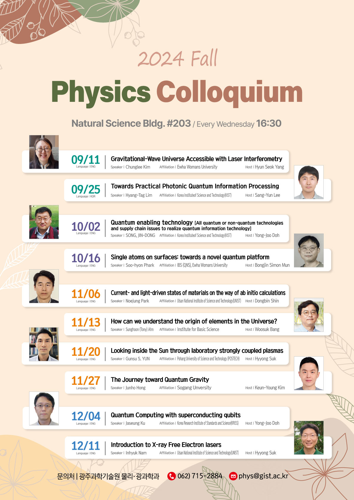 관련하여 궁금하신 점은, 물리광과학과 (이강은, gelee@gist.ac.kr)로 문의 바랍니다.