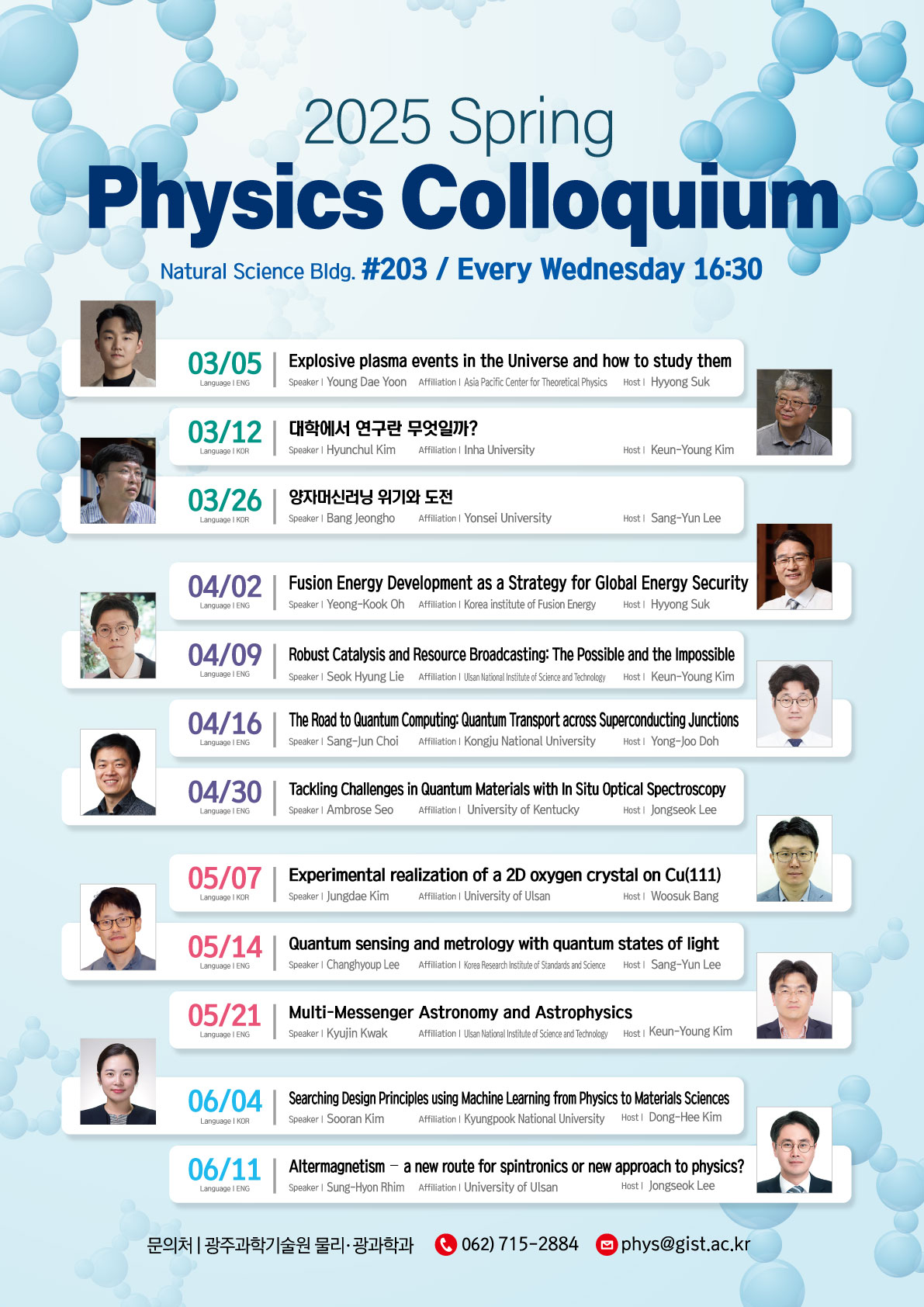 관련하여 궁금하신 점은, 물리광과학과 (phys@gist.ac.kr)로 문의 바랍니다.