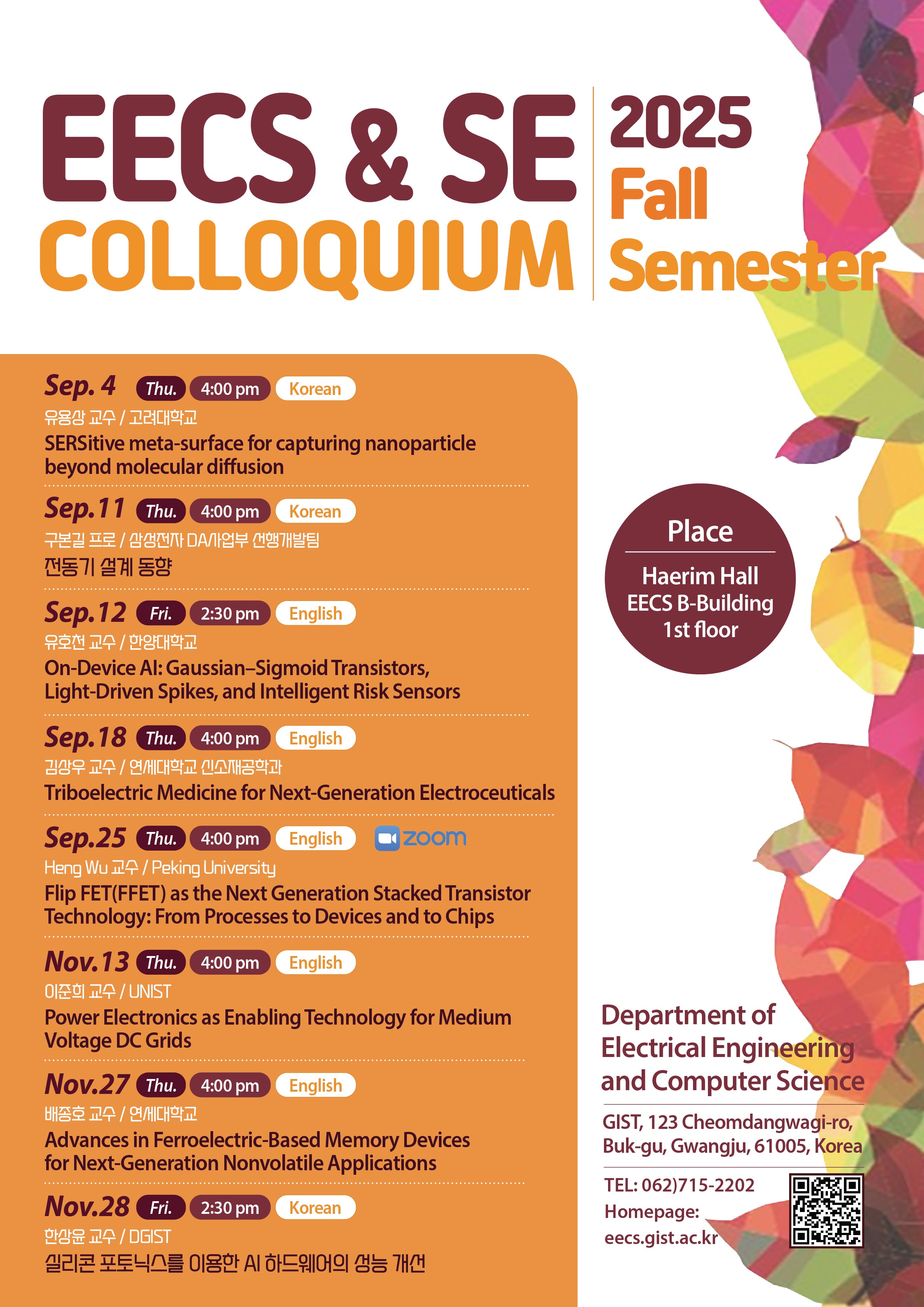 2025학년도 2학기 전기전자컴퓨터공학과 콜로퀴움을 아래와 같이 안내 드립니다.
