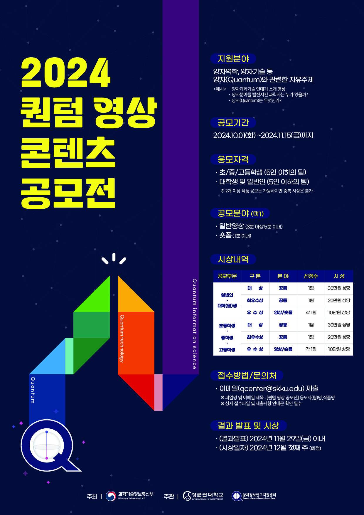 2024 퀀텀 영상 콘텐츠 공모전을 아래와 같이 개최하오니 많은 관심과 참여바랍니다.