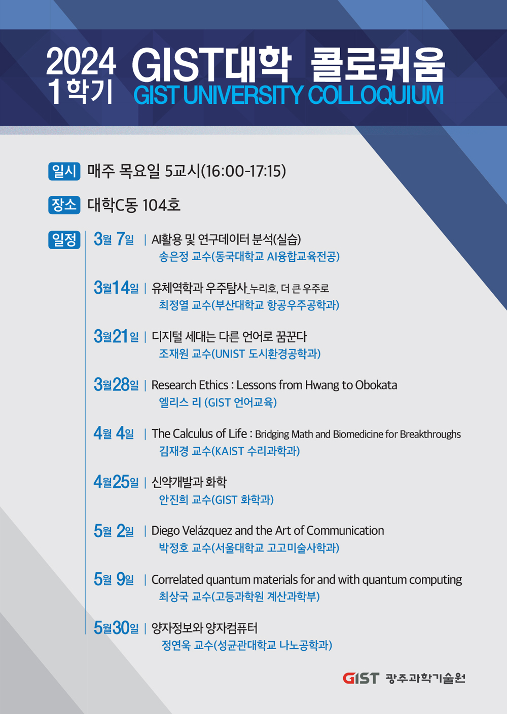 ○ 개최 장소: GIST대학 C동 104호