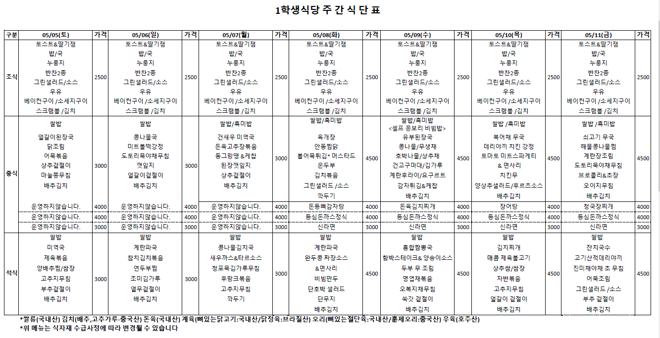 주간식단표(5.5~5.11)