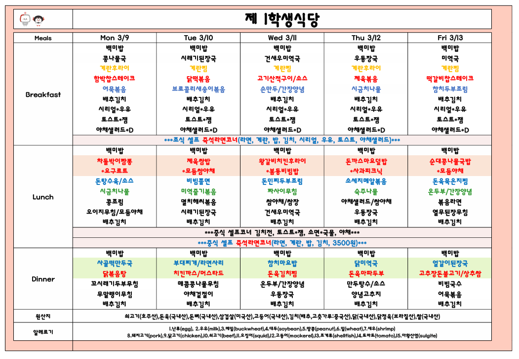 • 제1학생식당관리