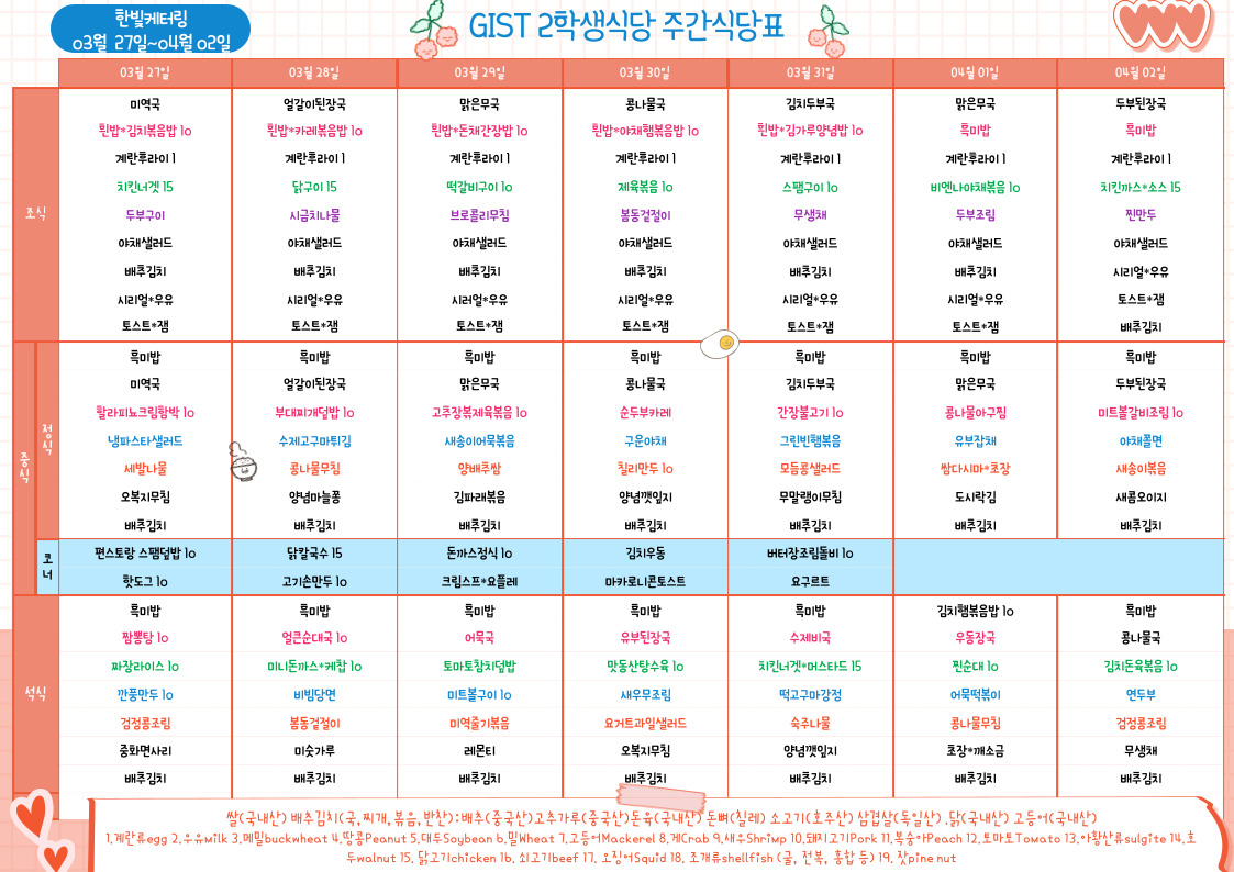 제2학생식당주간식단표(2023.3.27~23.04.02)