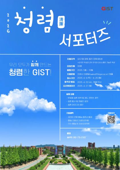 ![external_image [총무팀] GIST 청렴 서포터즈 1기 모집 안내(4. 9.(목) ~ 4. 20.(월)) 사진_1](https://www.gist.ac.kr/_prog/download/?editor_image=20260408150013588_RZP88KNS.png)