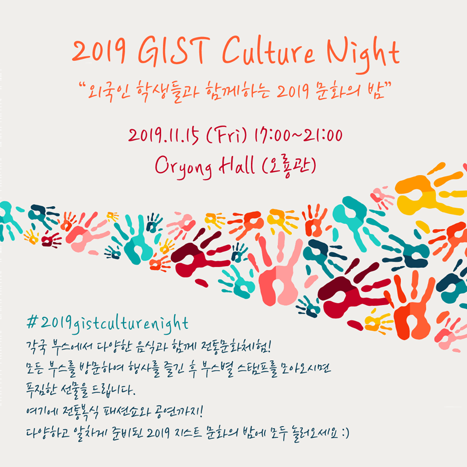 '2019 GIST 외국인 문화의 밤(GIST Culture Night)' 행사를 안내드립니다.