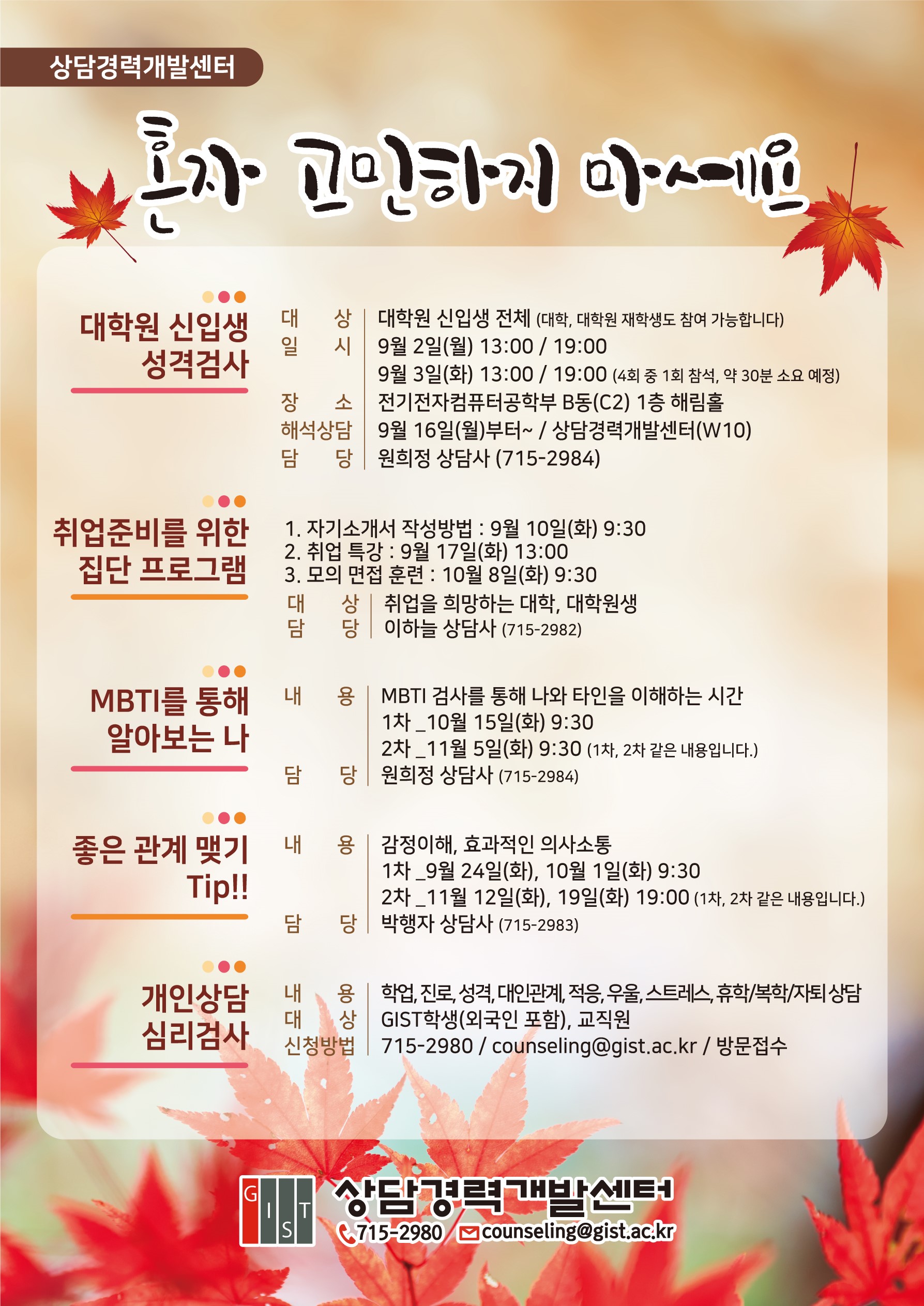 아래와 같이 2학기 프로그램을 준비하고 있습니다.
