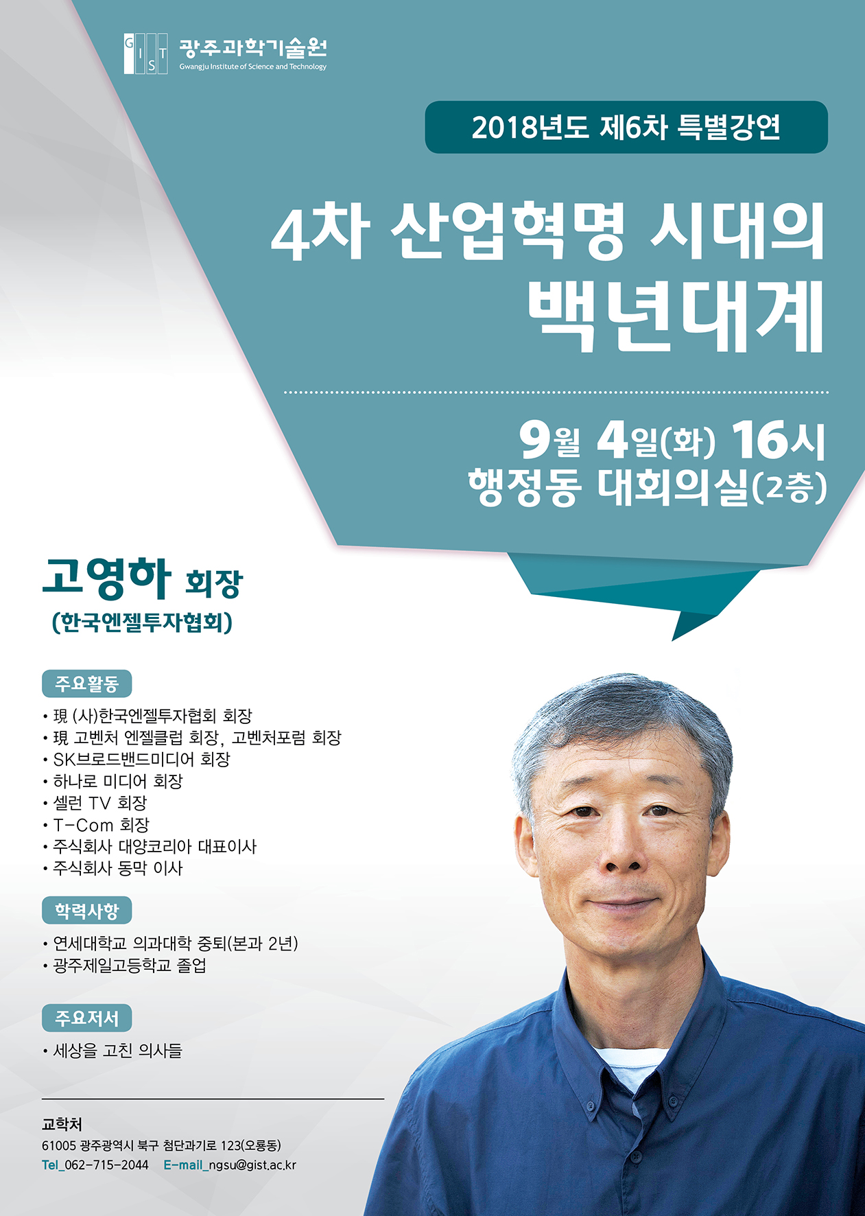 2018년 제6차 특별강연(9월 4일(화) 16시, 행정동 2층 대회의실)