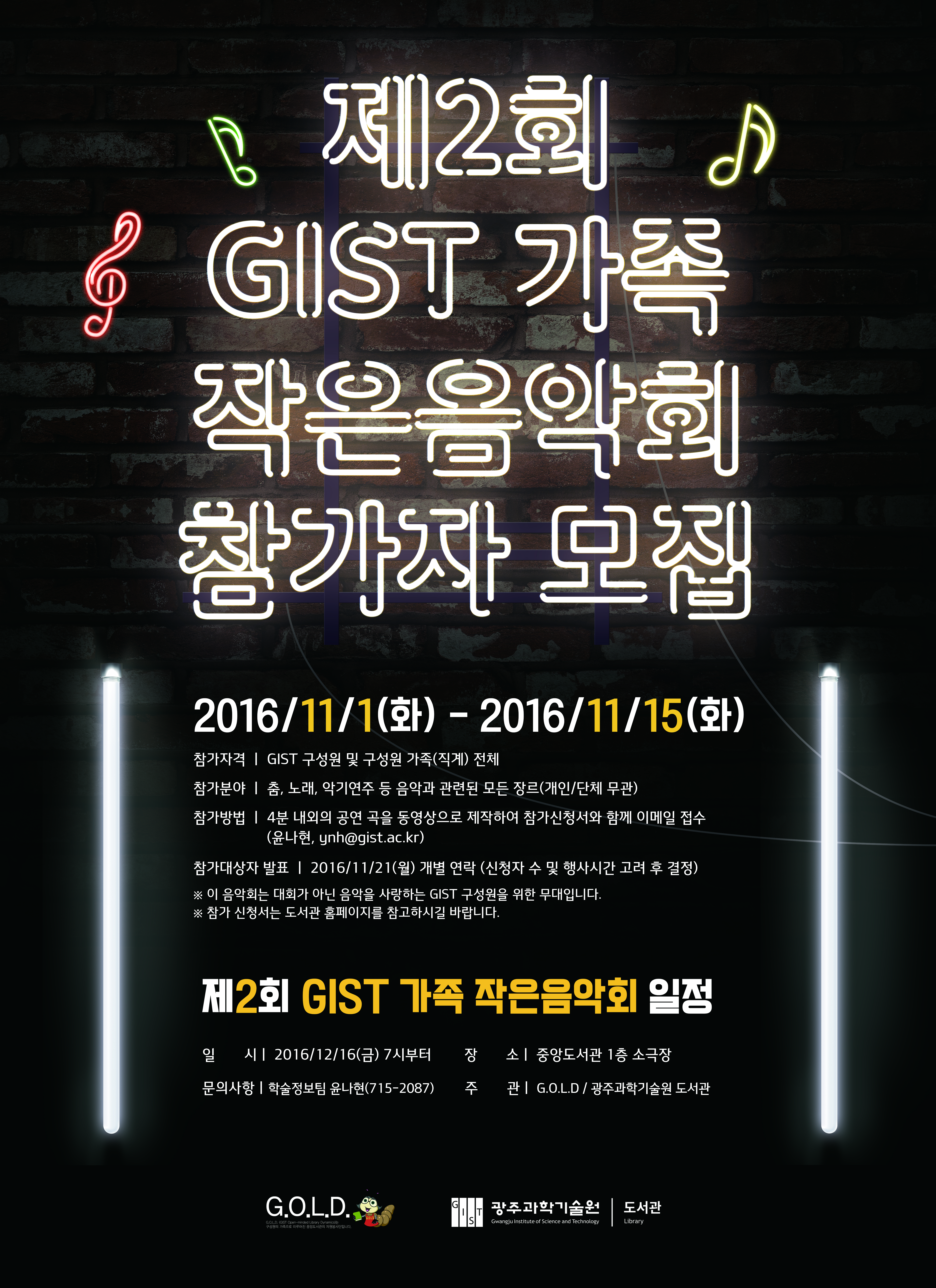 [도서관] 제2회 GIST 가족 작은음악회 참가자 모집