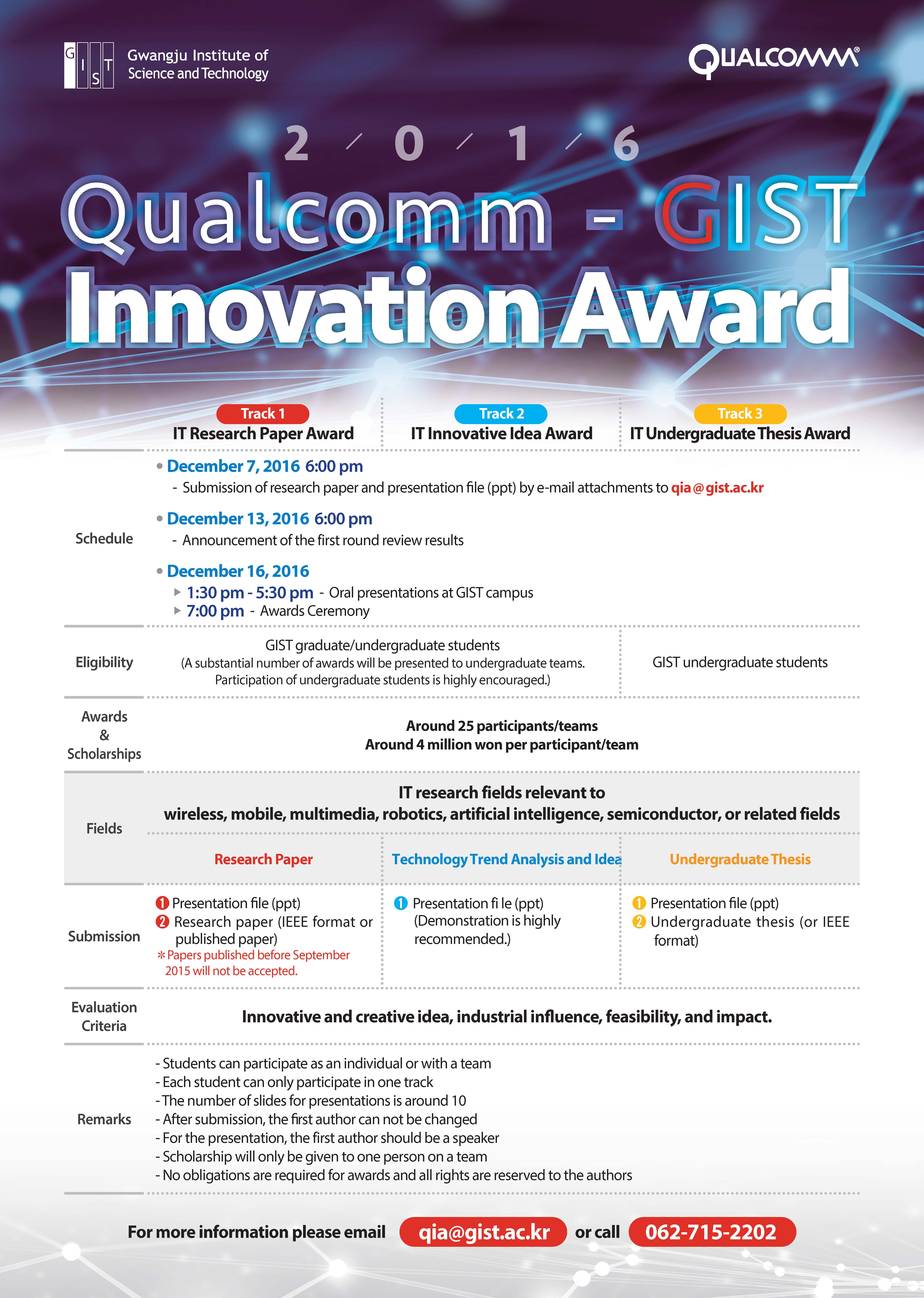 We inform you of 2016 Qualcomm-GIST Innovation Award.