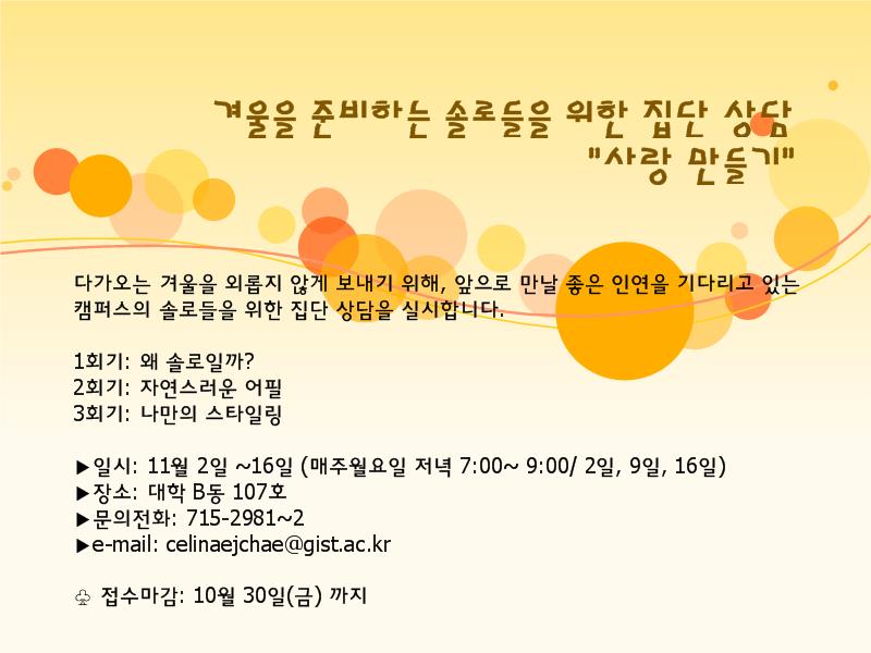 [학생상담경력개발센터] 11월 집단상담-캠퍼스 솔로들을 위한 "사랑만들기" 집단상담 |