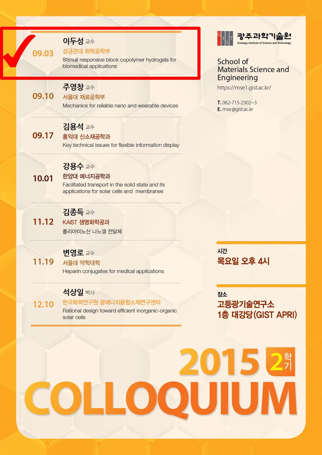 * Date & Time: 2015. 09. 03.(Thur.) 16:00~