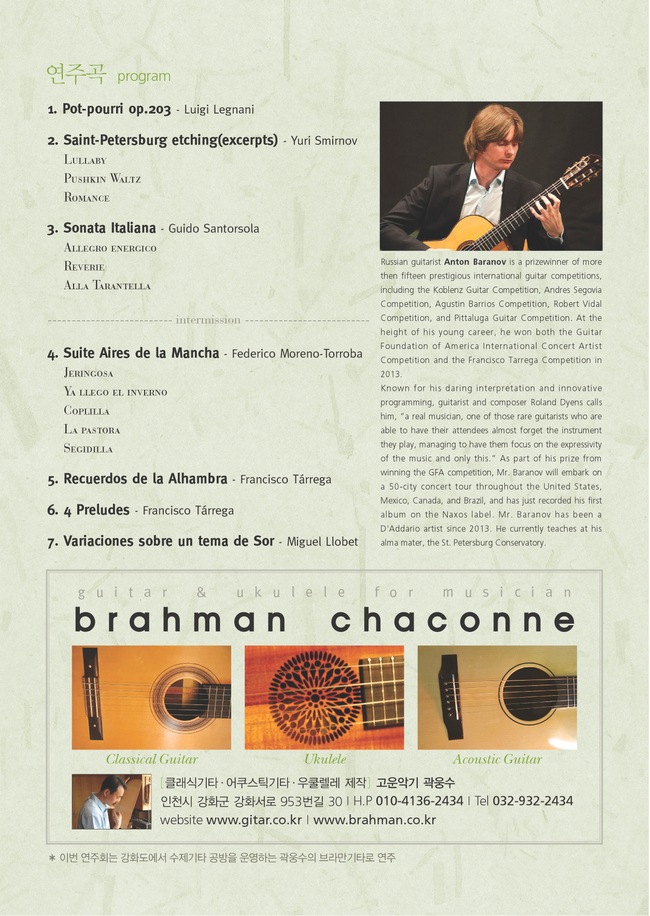 Anton Baranov (Russia, Tarrega 콩쿨 우승)의 초청연주회를