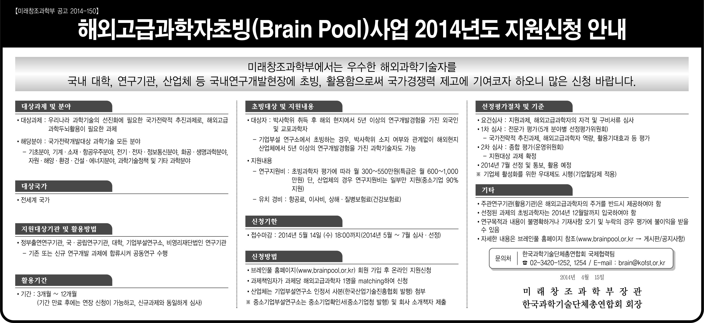 [과총] Brain Pool사업 2014년도 지원신청 안내
