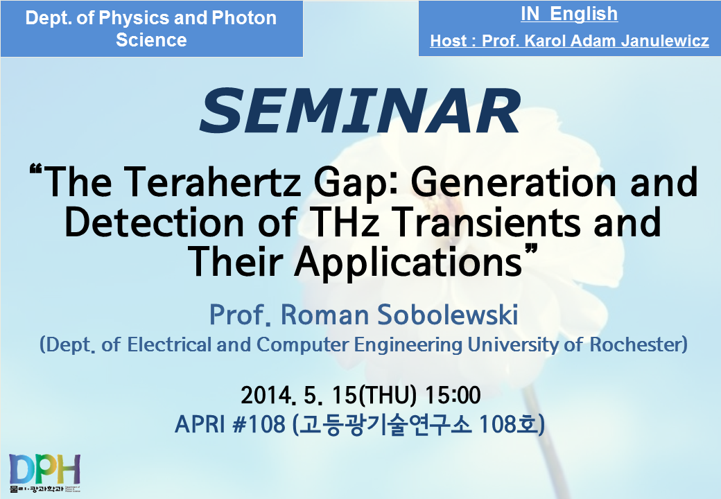 * Speaker: Prof. Roman Sobolewski (Dept. of Electrical and Computer Engineering University of Rochester)