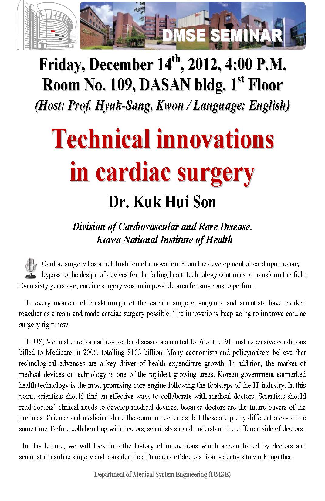 [DMSE Seminar] *12/14(Fri) 4:00P.M. / Technical innovations in cardiac surgery / Dr. Kuk Hui Son / Dasan Bldg.#109
