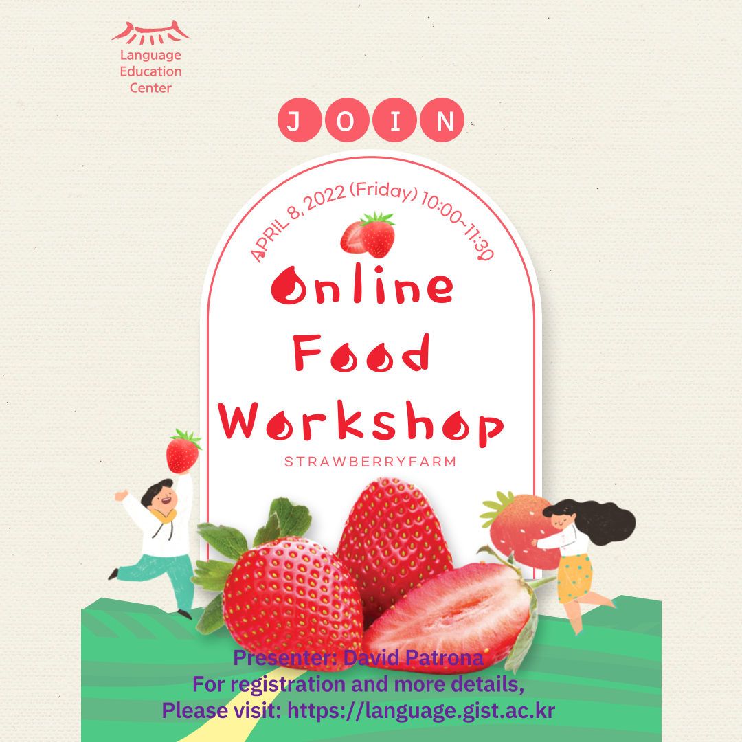 Description: If you like talking about food and meeting new people, join our Online Food Workshop! Food is tied to our cultures and identities, so talking about food is a common way to get to know other people. In this workshop, participants are introduced to vocabulary and expressions that are useful for conversations about food and practice using what they learn through activities and discussions.