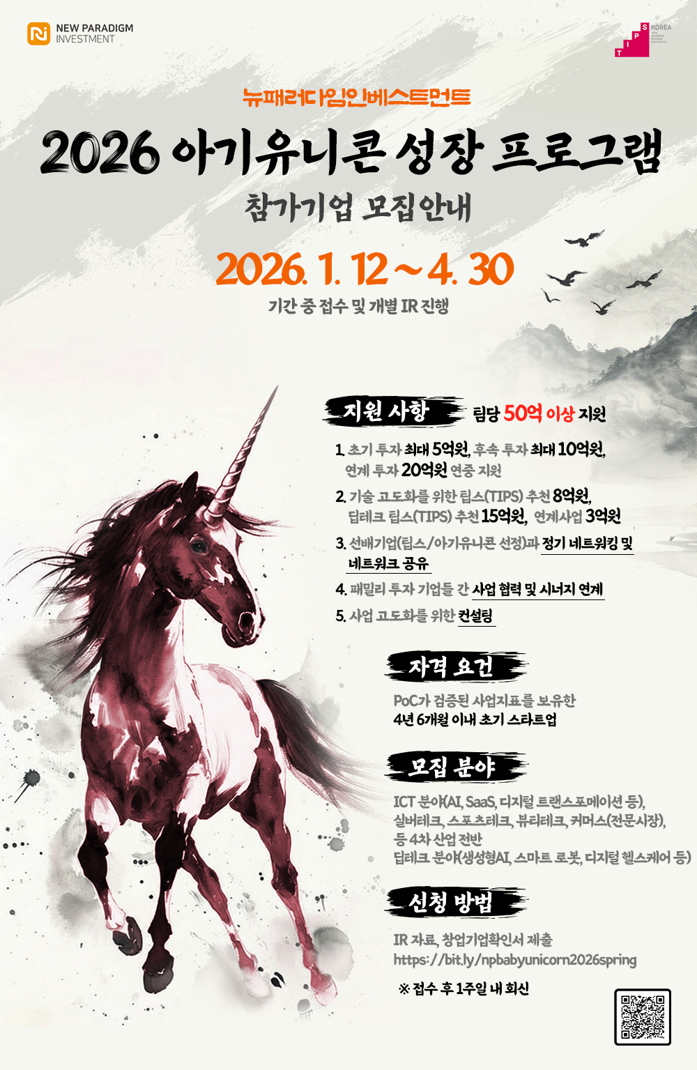 2026 아기유니콘 성장 프로그램 (뉴패러다임인베스트먼트 주관)