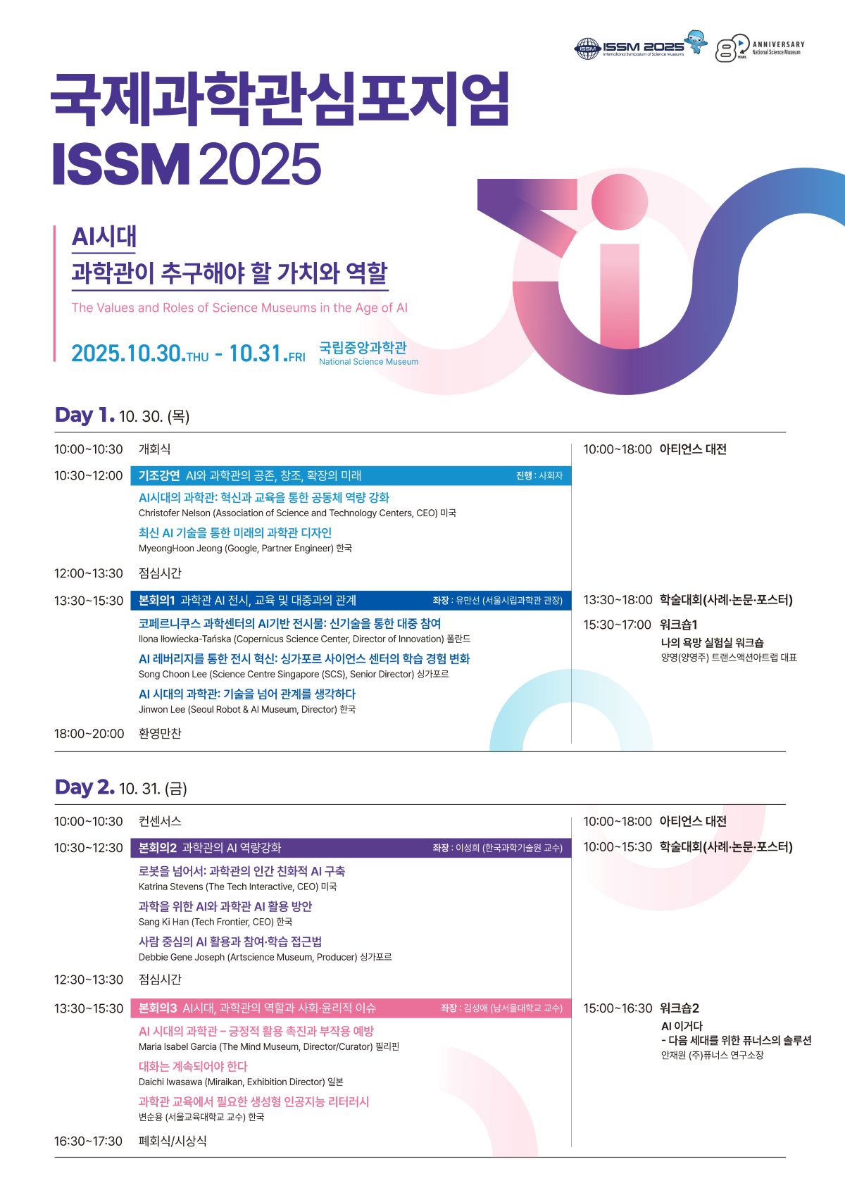 2) 기간: 2025년 10월 30일(목)~31일(금) ※개회식: 10.30.(목), 10:00 사이언스홀