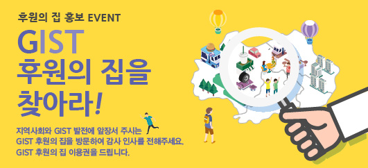 지역사회와 GIST 발전에 앞장서 주시는 GIST 후원의 집을 방문하여 감사 인사를 전해주세요. GIST 후원의 집 이용권을 드립니다.