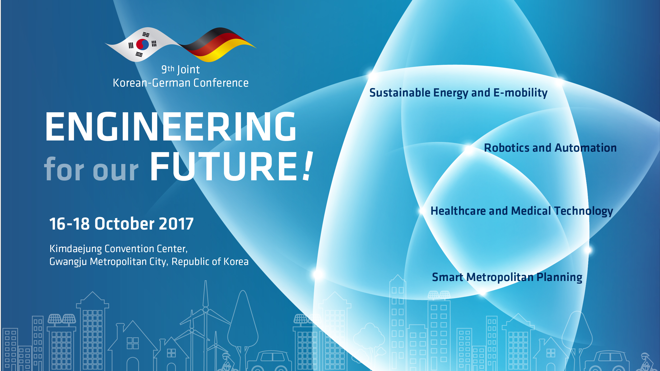 행사개요제9회 한독 공동학술대회에서는 미래를 위한 기술(Engineering for our future)이라는 대주제 아래, 지속가능한 에너지, 전기차 & 수소전기차, 로보틱스 & 자동화, 헬스케어 & 의료공학, 그리고 스마트도시계획 등의 소주제들로 엔지니어링 기술에 관한 다양한 발표와 토론이 진행됩니다
