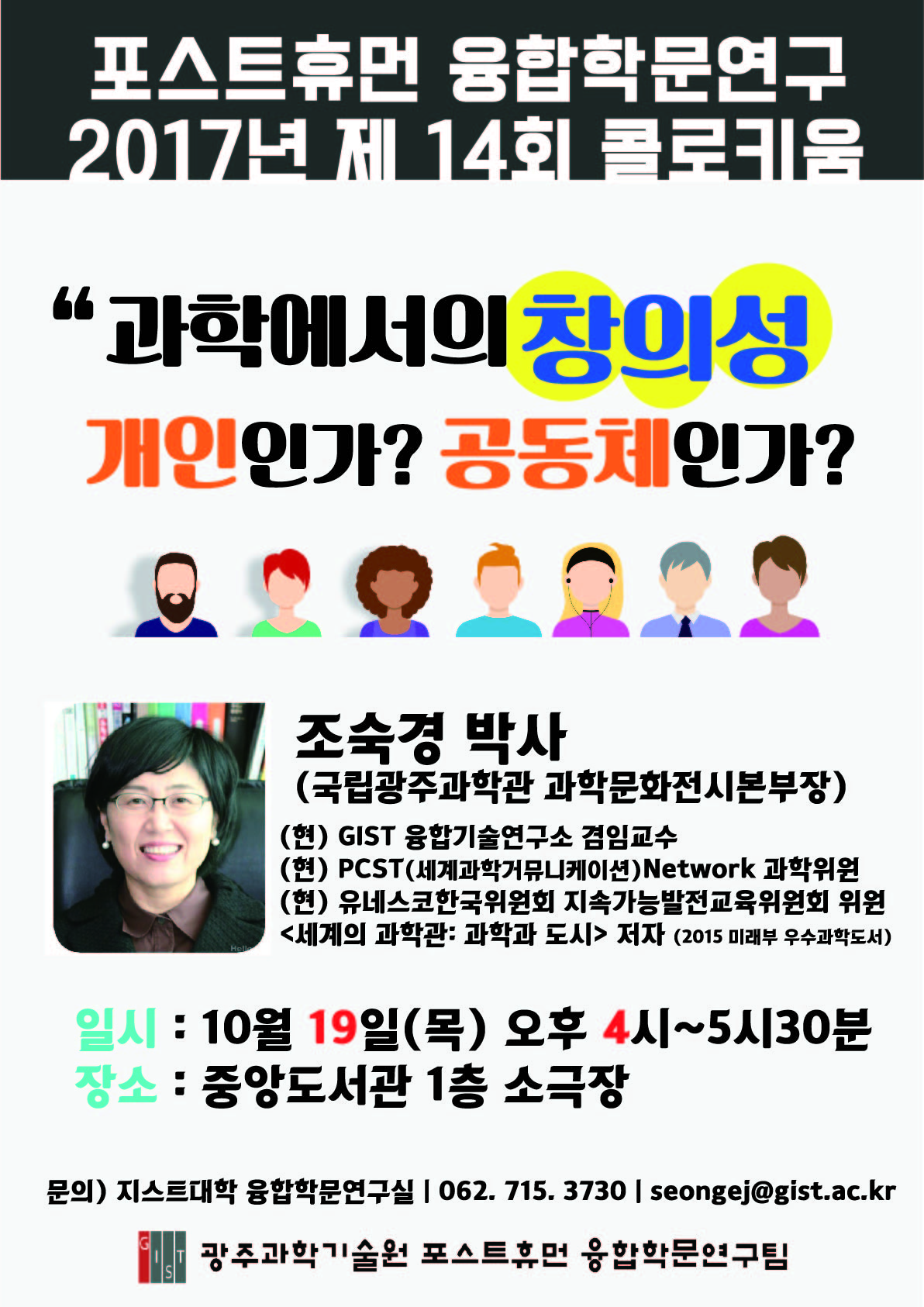 GIST 포스트휴먼 융합학문연구실에서 제 14회 콜로키움을 개최합니다.