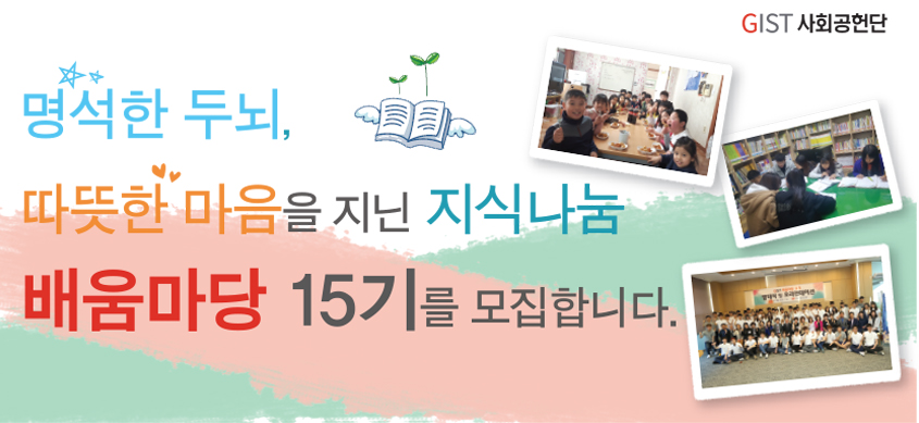 GIST에서는 지역협력 및 저소득층 교육지원을 위하여 GIST 배움마당(방과후 교사)을 운영하고 있습니다.