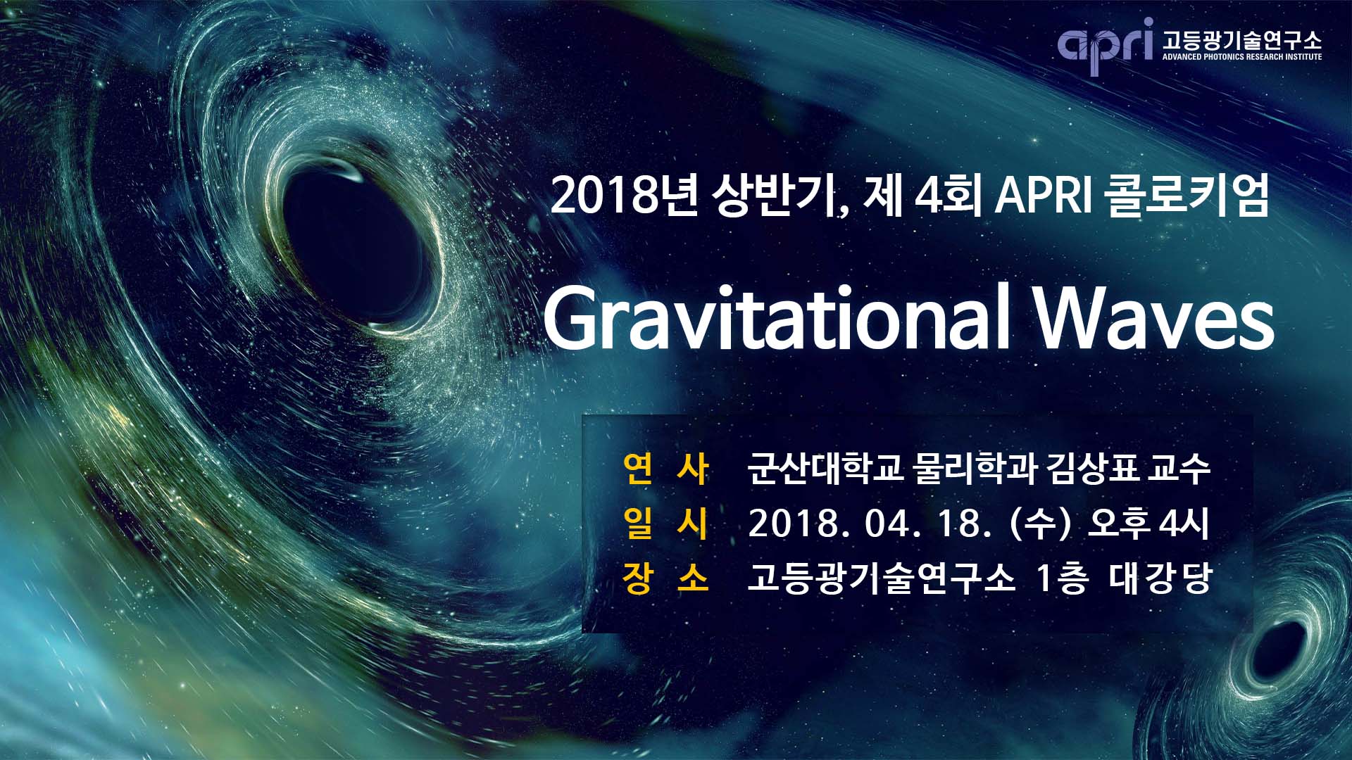 '중력파: Gravitational waves'라는 주제로 강연하실 예정이니