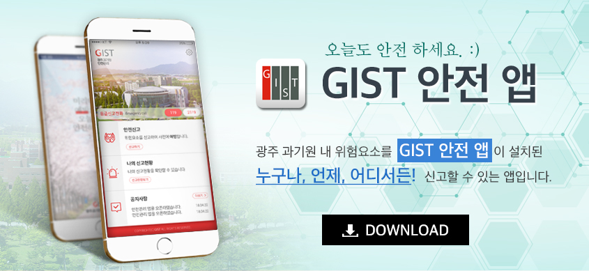 나와 우리 동료의 안전한 캠퍼스 생활을 위하여 지스트 구성원 여러분의 많은 활용 바랍니다.