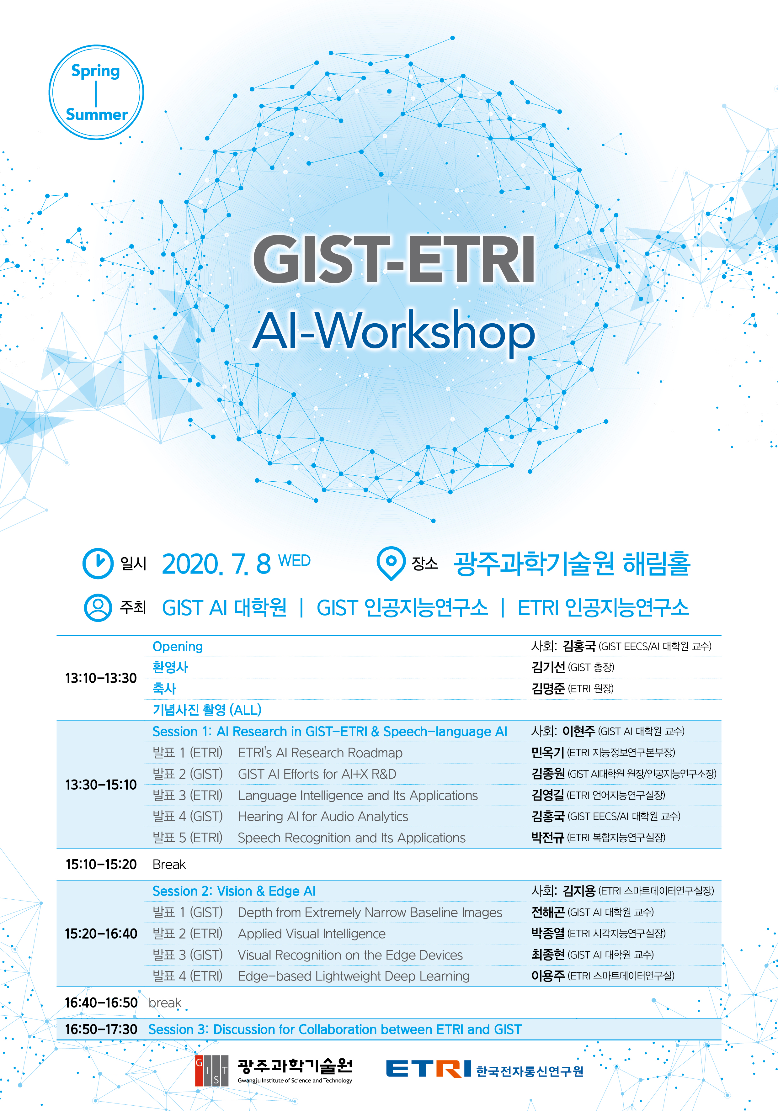 16:50 ~ 17:30 | session 3 : discussion for collaboration between etri and gist |
