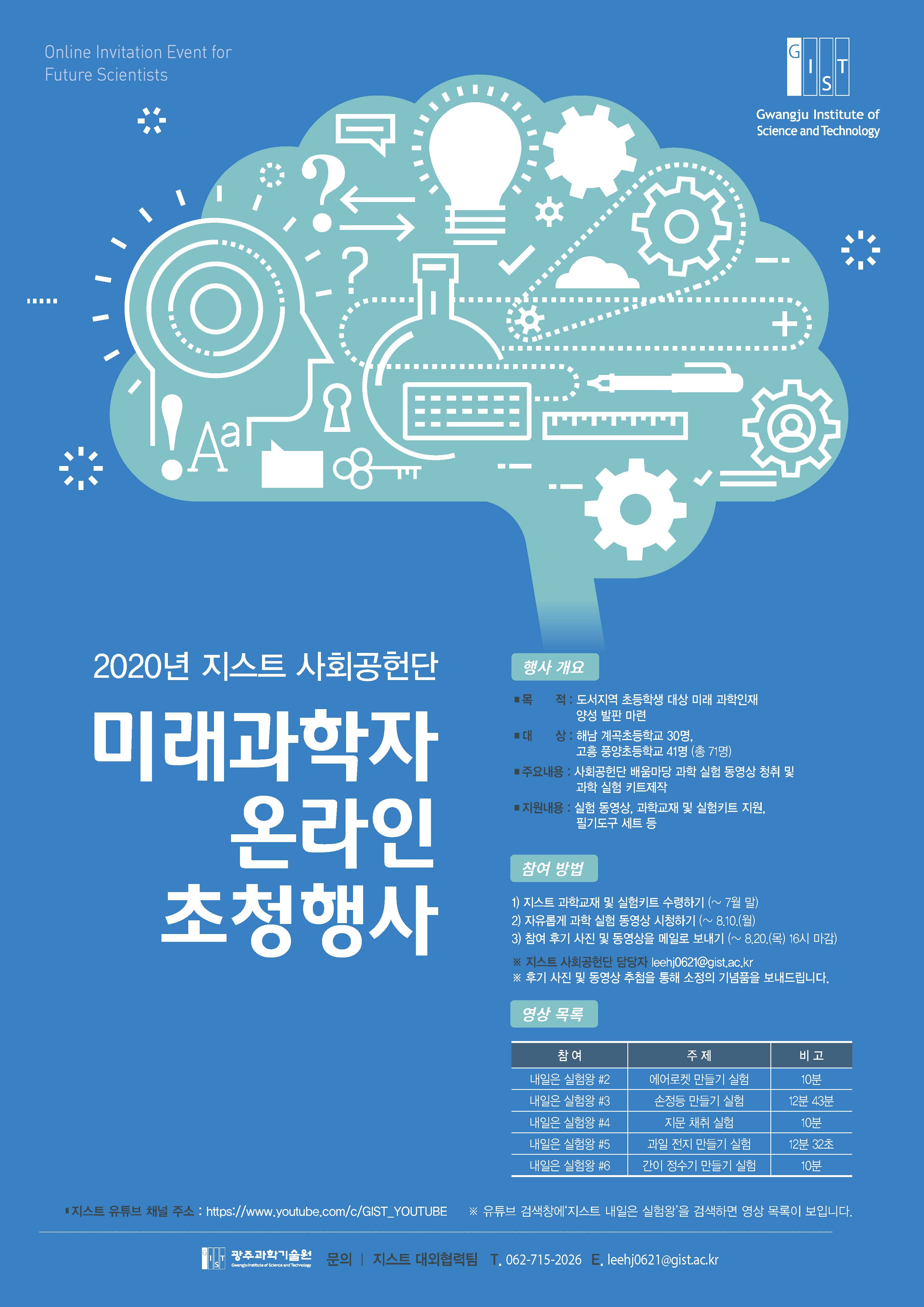 * 지스트 사회공헌단 담당자 leehj0621@gist.ac.kr