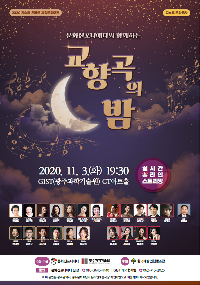 ![[지스트 과학문화주간]지스트 문화행사 '문화신포니에타와 함께하는 교향곡의 밤' 안내 (2020.11.3.(화) 19:30, 행정동 CT홀 / 실시간 라이브 공연) 안내 포스터 이미지입니다. 자세한 내용은 아래를 참고하세요](http://www.gist.ac.kr/_prog/download/?editor_image=20201021091713445_IJHA1TRX.png)
